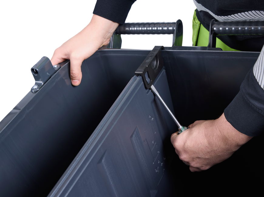 Beholderens glatte overflader gør den nem at rengøre og alle komponenter kan genanvendes ved endt levetid.