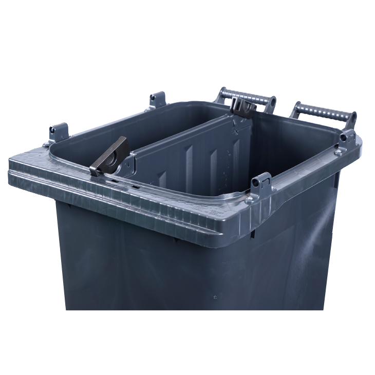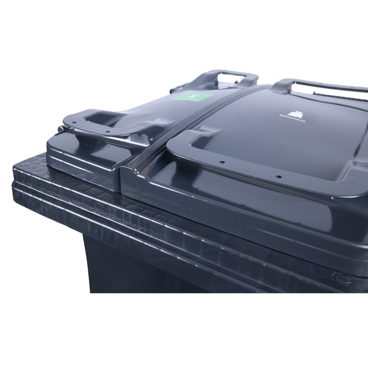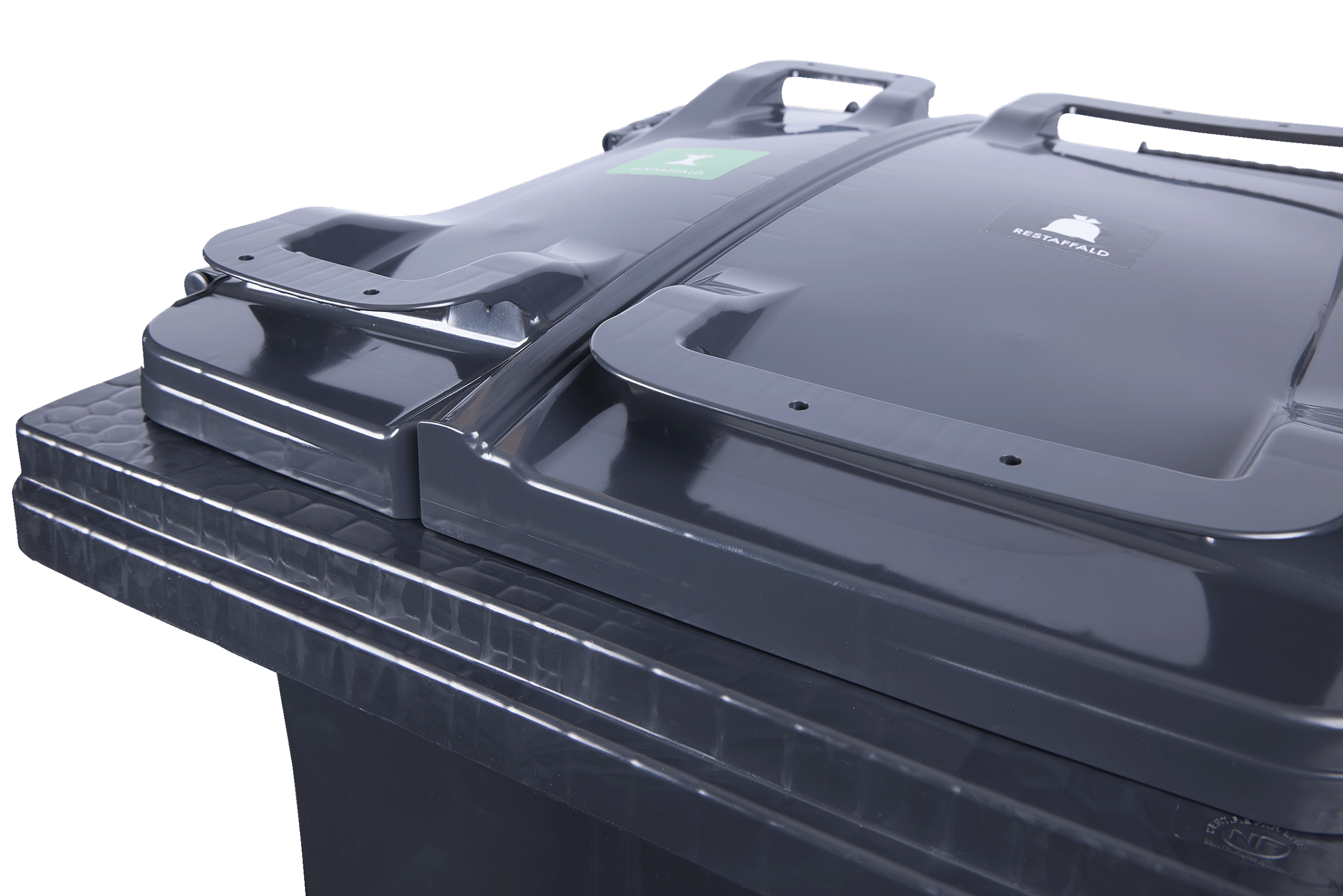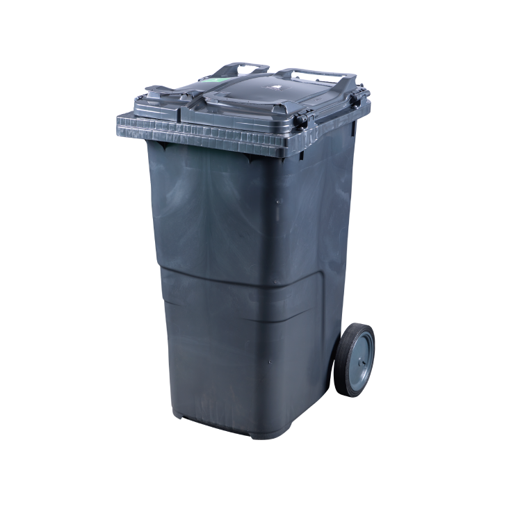 - Grå beholdere indeholder op til 98 % genanvendt plast