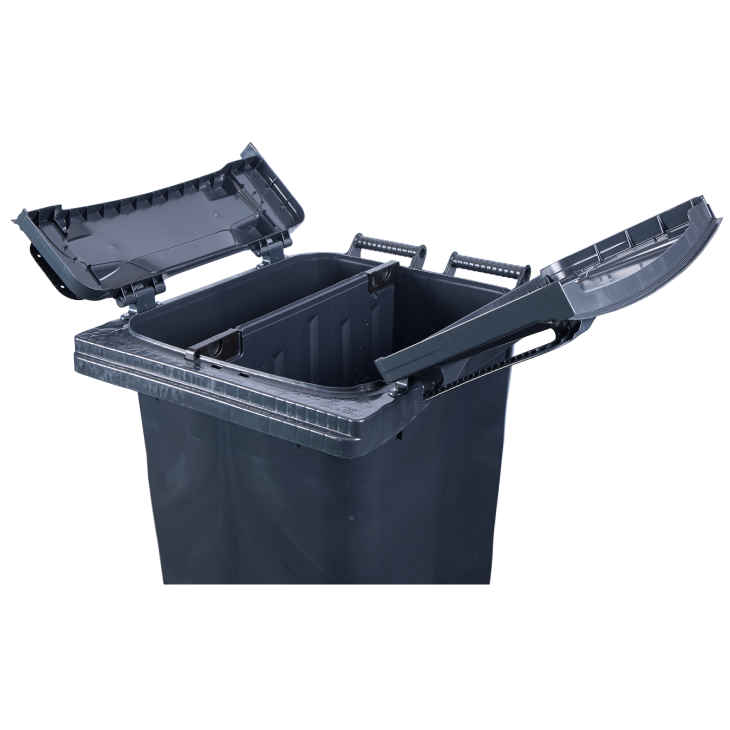 Den 2-hjulede 240 liters SULO® affaldsbeholder med sidehængslede låg er fremstillet i højkvalitets HDPE og er velegnet til effektiv og hygiejnisk indsamling af affald.